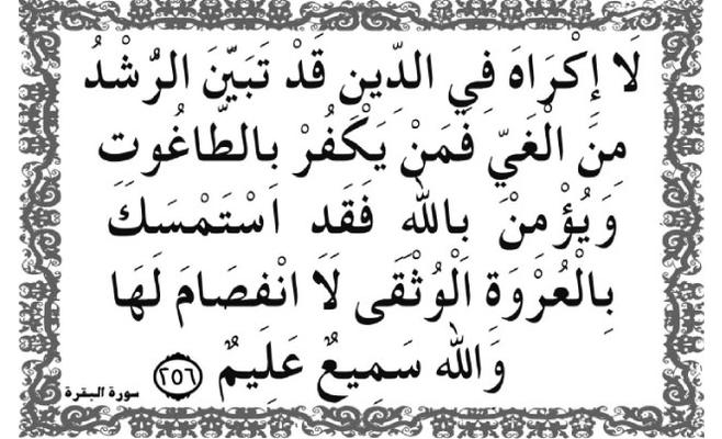 إنّ تحريك بندول الآية القرآنية "لاَ إِكْرَاهَ فِي الدِّينِ قَد تَّبَيَّنَ الرُّشْدُ مِنَ الْغَيِّ..." (البقرة، الآية 256)، بناء على حرف الجر "في"، سيفضي إلى حقيقة صادمة فيما يتعلّق بما أقرّته -من جهة- هذه الآية على المستوى التنظيري اعتماداً على حرف الجر "في"، وما هو معمول به -من جهة ثانية- واقعاً في العالَم الإسلامي.