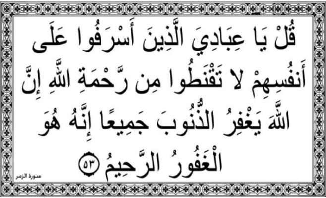 ولذلك فقد أتبع الله هذه الآية بقوله: "وأنيبوا إلى ربكم وأسلموا له من قبل أن يأتيكم العذاب ثم لا تُنصَرون. واتبعوا أحسن ما أُنزِل إليكم من ربكم، من قبل أن يأتيكم العذاب بغتة وأنتم لا تشعرون"، فحتى يغفر الله الذنوب جميعا لا بد من إنابة وتوبة حقيقية، فيها الندم على ما فات، والإقلاع عن المعصية في الحال، والعزم على ألا أعود إليه في المستقبل، فالتوبة تشمل الزمان كله، ماضيا وحالا ومستقبلا، لتصفو النفس مع خالقها، وترتاح من علائق لطالما أثقلت ظهر الإنسان وشوّشت عليه فكره، ونغّصت عليه حياته، فهو بالمعصية مُحْتقَر تستعيذ منه الخلائق كلها، منبوذ إلا عند أمثاله من أهل الشقاء، فليخرج من ضيق الدنيا إلى سعة الدنيا والآخرة، وليعش مكرّما في طاعته لله تعالى، المُستحِق وحده للعبادة والخضوع والاستسلام.