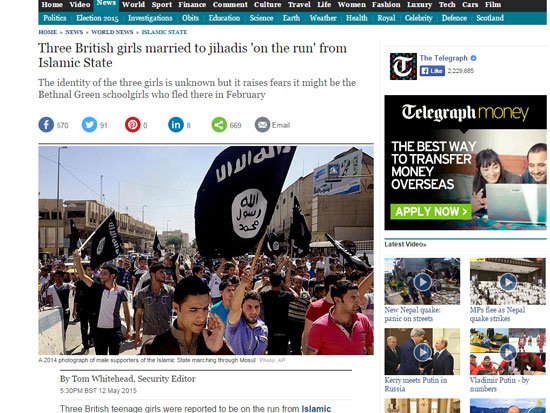 التليجراف: هروب 3 فتيات بريطانيات من داعش بعد زواجهن من أعضاء بالتنظيم