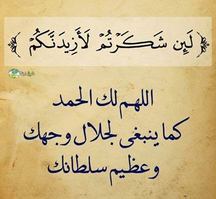 - الشكر لله سبحانه على نعمه الكثيرة، قال تعالى: "وَإِذْ تَأَذَّنَ رَبُّكُمْ لَئِن شَكَرْتُمْ لأَزِيدَنَّكُمْ..." (إبراهيم، الآية 7). والشكر إقرار بفضل المنعِم سبحانه، فهو ليس جهدي بل هو عطاء الله تعالى. والشكر يكون بالعمل لا بمجرد اللسان، ولذلك قال الله تعالى: "... اعْمَلُوا آلَ دَاوُودَ شُكْرًا وَقَلِيلٌ مِّنْ عِبَادِيَ الشَّكُورُ" (سبأ، الآية 13). فشكر أي نعمة إنما هو بالعمل؛ إذ شكر المال بإنفاقه، وشكر الصحة بالطاعة والعمل، وشكر نعمة العلم بتبليغه، وهكذا. فمن شكر الله زاده، ومن كفر نعمه فهو العذاب الشديد الذي ينتظره دنيا وآخرة.