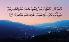 من الآيات الإرشادية، الآمرة بالصبر على مشاق الدعوة إلى الله، والداعية إلى تسبيح الله في كل آنٍ وعلى كل حال؛ لينال العبد رضى الله في الدنيا والآخرة قوله تعالى: {فاصبر على ما يقولون وسبح بحمد ربك قبل طلوع الشمس وقبل غروبها ومن آناء الليل فسبح وأطراف النهار لعلك ترضى} (طه:130).