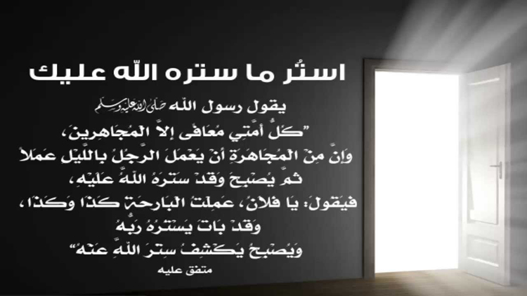 ـ عن عبد الله بن عباس رضي الله عنه عن النبي صلى الله عليه وسلم قال: (من ستر عورة أخيه المسلم ستر الله عورته يوم القيامة، ومن كشف عورة أخيه المسلم كشف الله عورته، حتى يفضحه بها في بيته) رواه ابن ماجه وصححه الألباني. قال المنذري: "ستر المسلم هو تغطية عيوبه وإخفاء هنَّاته (زلاته وهفواته وقبائحه)".