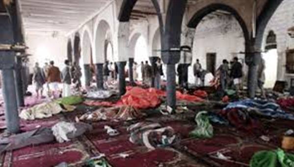 واستهدف هجومان انتحاريان، مساء الأربعاء، المسجد التابع لجماعة الحوثي.