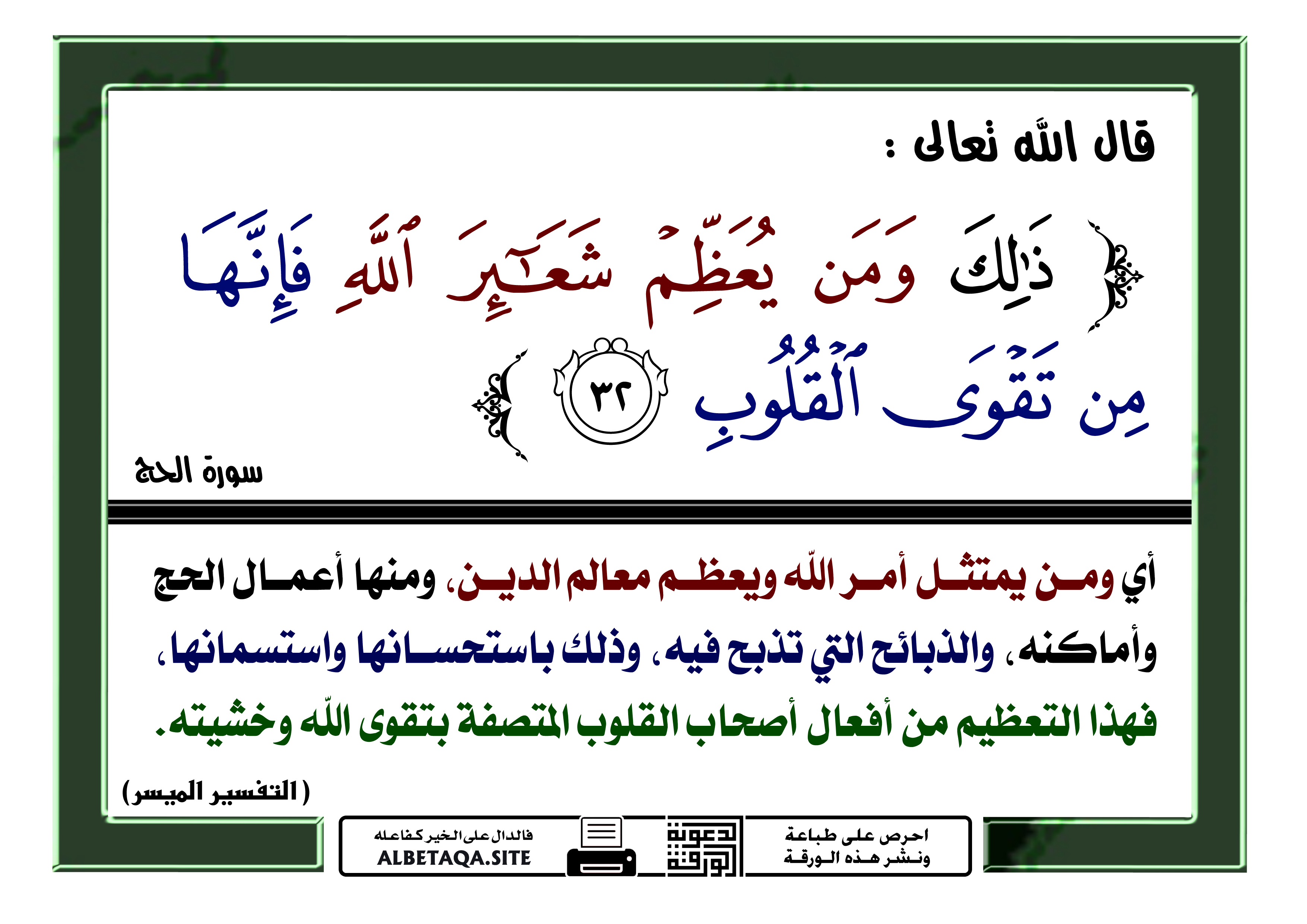 “ذلك ومن يعظم شعائر الله فإنها من تقوى القلوب”