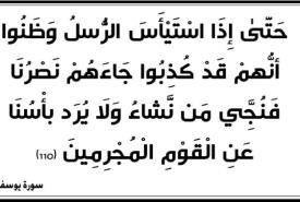 “حتى إذا استيأس الرسل وظنوا أنهم قد كُذِبوا جاءهم نصرنا”