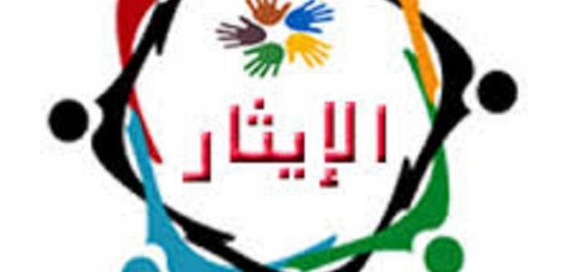 الإيثار لغة: هو التقديم والتفضيل، أمّا إصلاحاً: فهو عكس الأنانية، ولفظ يطلق على أي تصرف أو فعل أخلاقي يقوم الشخص بفعله، ويهدف بذلك أن تعمّ الفائدة والخير على غيره من الأشخاص وليس عليه دون انتظار أيّ مقابل لهذا الفعل، فالشخص هنا يفضل المصلحة العامّة على المصلحة الشخصيّة. فوائد الإيثار لعلّ من أجمل الصفات التي قد يتّصف بها الإنسان هو حب العطاء وتحقيق الخير للآخرين، وما أقبح وأبشع أن يتّصف بالأنانية وحبّ الذات، حيث دعت جميع الديانات السماوية والثقافات إلى الإيثار والسخاء والإحساس بالآخرين، لما له من نتائج فردية و مجتمعيّة كثيرة، فالإيثار سواء كان ماديّاً أم معنوياً يعمل على تقوية الروابط والعلاقات الإنسانيّة والاجتماعيّة بين الأفراد وأيضاً يعمل على تحقيق الرضا الذاتي والنفسي للفرد والشعور بالطمأنينة والسلام الداخلي. إنّ الإيثار هو شعور داخلي ونزعه موجودة بداخل كل فرد في المجتمع، ولكن يحتاج إلى طرق عديدة وأساليب مبتكرة لتثيره في نفس الفرد وتخرجه ليصبح فعل عملي على أرض الواقع، وعليه فإنّ على كلّ فرد النهوض بنفسه وبمجتمعه، والتحلّي بصفة الإيثار لما لها من فوائد إيجابيّة تعود بالنفع على الفرد والمجتمع سوياً، ومن