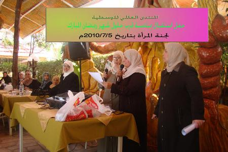 لمزيد من التواصل والتفاعل مع سيدات المجتمع ، نظمت لجنة المرأة حفل استقبال صباحي بمناسبة قرب شهر رمضان المبارك في مطاعم الفردوس وحضره عدد كبير من السيدات من مختلف قطاعات المجتمع وذلك يوم الاثنين الموافق 5/7/2010.