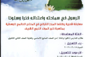الرسول الكريم في سماحته واعتدالة فكرا وسلوكا يعلن منتدى الوسطية عن بدء التسجيل في المسابقة الشعرية , أطلقها المركز ال
